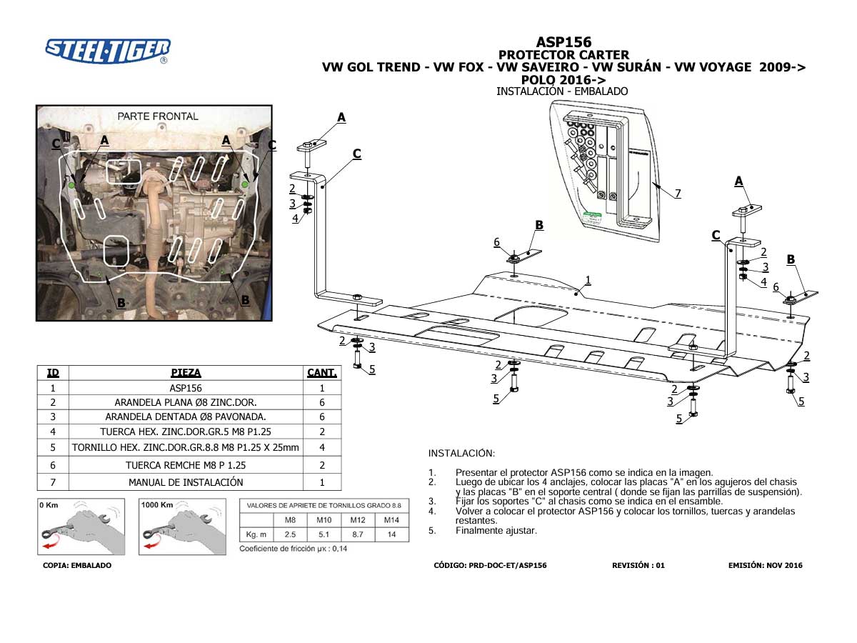 Protector Cubre Carter Gol 2010 a 2024 G5 G6 G7 G8 Sedan Hatch Saveiro 2010 a 2025 G5 G6 G7 G8 Cross Extreme Suran Fox G5 G6 G7 G8 Polo 2016 a 2024 Espesor del Protectro 2.2 mm