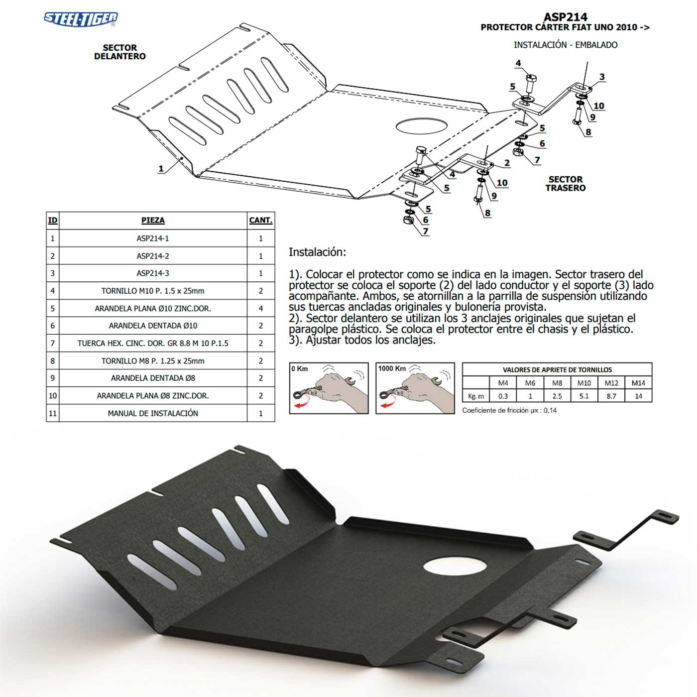 Cubre carter reforzado espesor de la chapa 2.2mm Fiat Uno Way 2011 a 2020 Fiat Uno Attractive 2016 a 2022