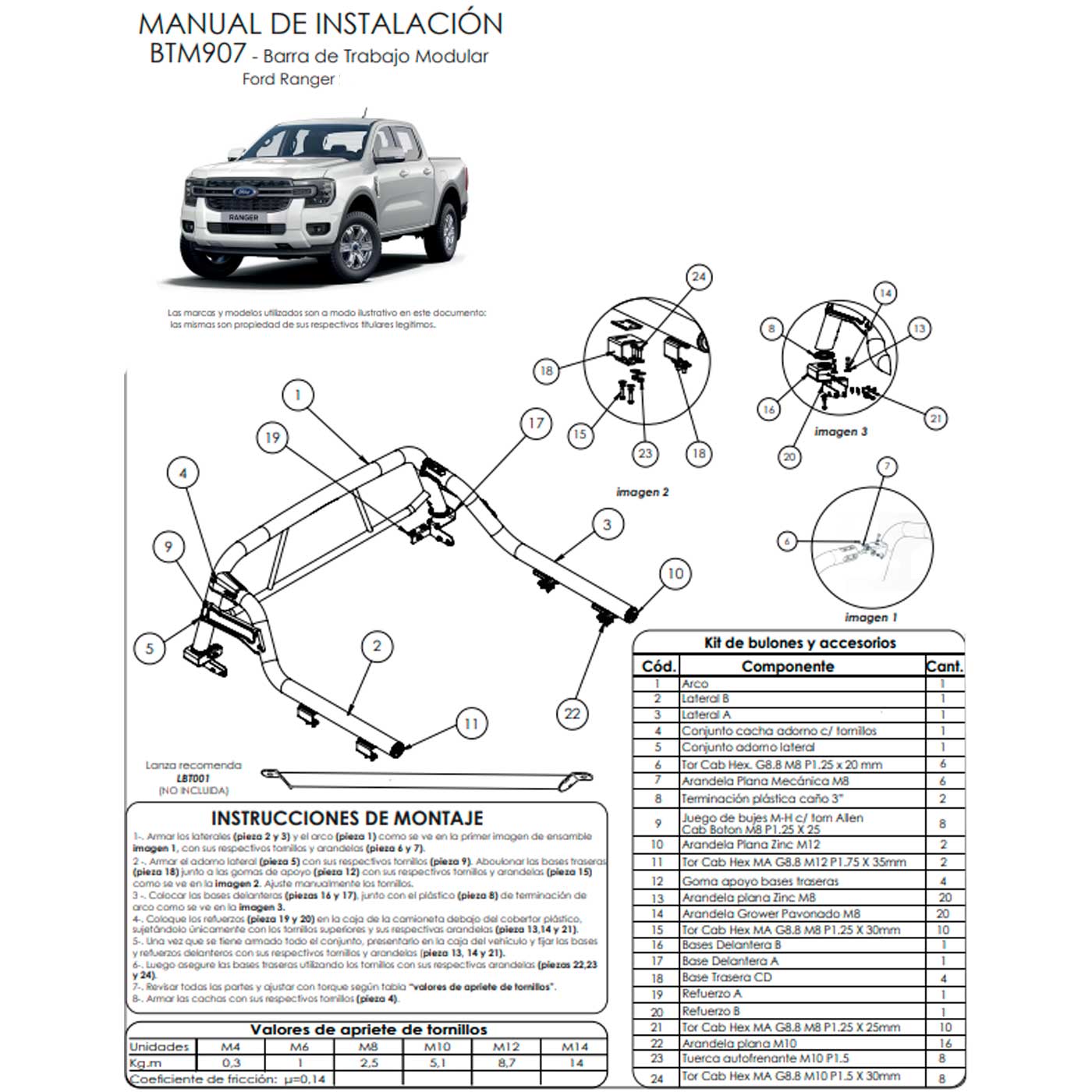 Barra de trabajo modular Ranger 2025 a 2027