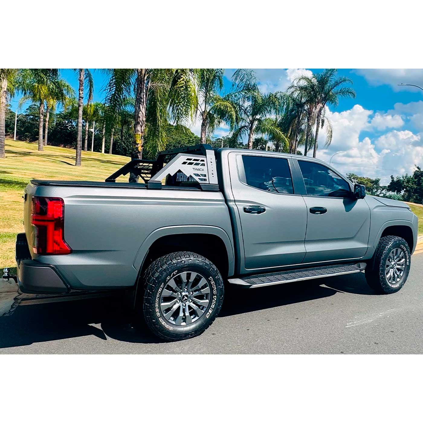 Modelos ejemplo aplicables: Hilux, NP300, Amarok, S10, Ranger, L200 Sportero, Mazda bt50, Wingle 3, 5 y 6, Frontier D21, D22, D23, NP300, Foton V7 V9 ,JMC Grand Avenue Medidas minimas ,Altura 45 cm ,Ancho 122 cm , Profundidad 70 cm Medidas Maximas Altura 57 cm Ancho 1.80 cm Profundidad 70 cm Producto de alta calidad que protege la carrocería y permite transportar o asegurar la carga. Sistema modular exclusivo que permite ajustar la altura y el ancho. Fabricado con perfil rectangular de acero al carbono de alta resistencia. Diseño todoterreno que combina deportividad y montaje modular. Base elevada para facilitar el paso de la cubierta. Fijación sin taladrar con sistema de clips. Exclusivo aplique lateral cortado con láser. Acabado en negro mate. Barra de trabajo Antivuelco Universal Regulable Trail Track