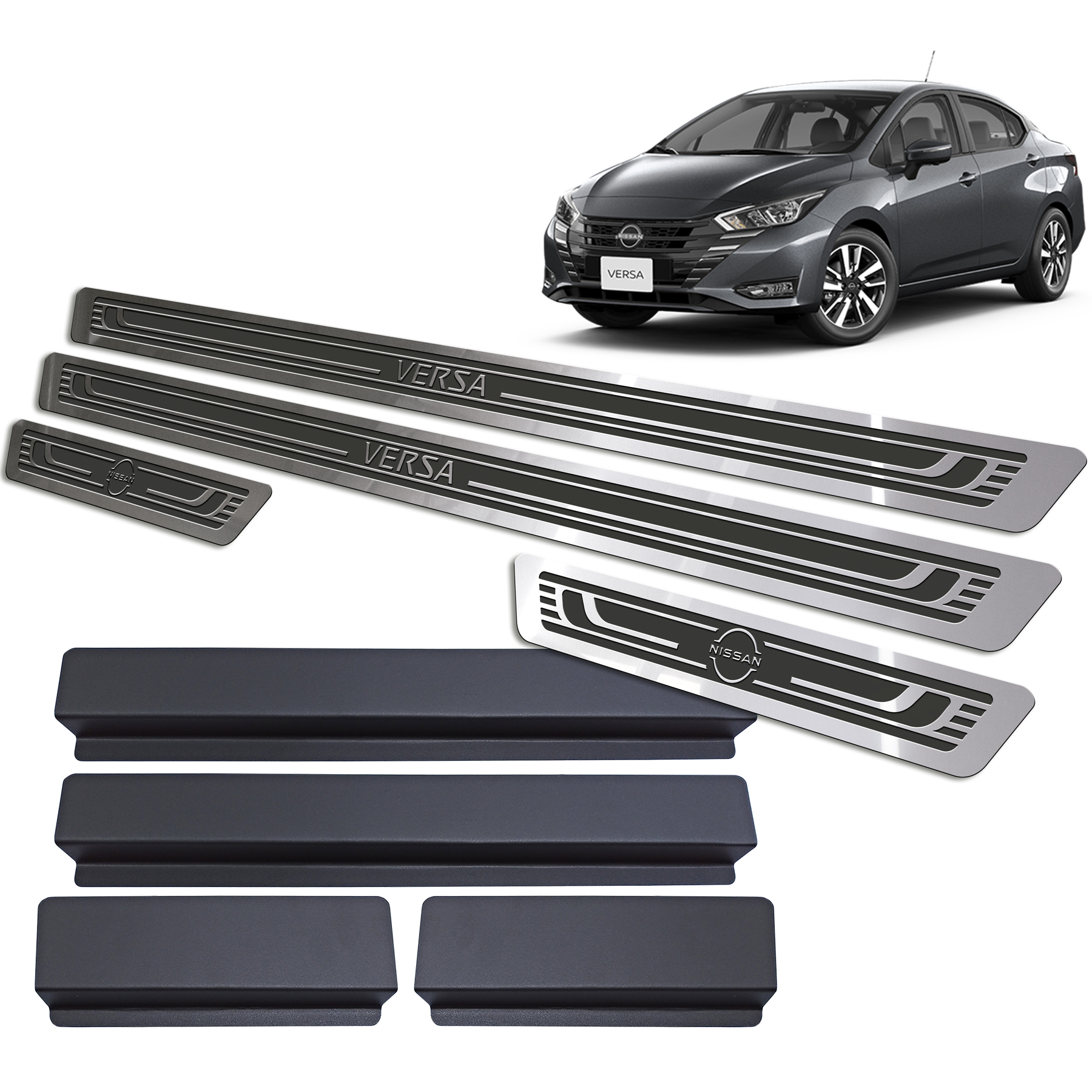 Cubre zocalo autoadhesivo marca THREEPARTS (Br) para Nissan Versa 2020 a 2026 Diseño especifico Acero inoxidable 304 Espesor: 0.5 mm Cepillado y pulido de alta Calidad Gravado quimico de Alto relieve Pintura Automotriz de alta resitencia Cinta doble faz 3M Scotch VHB YR-9625 de cobertura total. Vinilo Alltak con tecnologia Airflow 3.0 con adhesivo antiburbujas. vinilo 6077