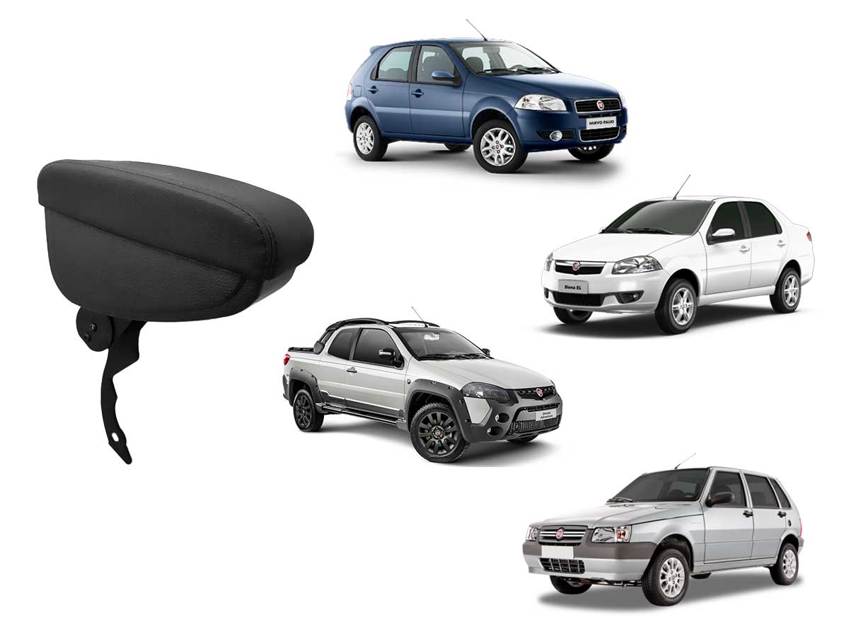 Apoya Brazo para Fiat Palio, Siena, Strada y Uno hasta 2012 de Eco Cuero Negro Agarre en tornillo del cituron con Soporte Curvo