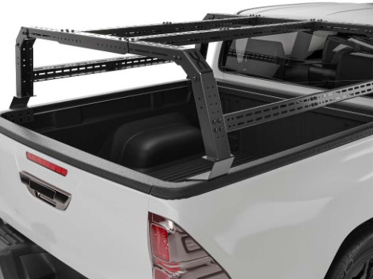 Barra completa de trabajo con Rack para carga todas las pickup grande Sistema modular de rack de cubos, el Bed Rack de la marca Track Acessórios es un producto extremadamente resistente y versátil. Desarrollado inicialmente como un producto Off Road para soportar tiendas de campaña, también se puede utilizar en otras funciones, como soportar escaleras, soportar equipos pesados o objetos largos, como kayaks, por ejemplo. Este sistema tiene regulación en altura y anchura y es adaptable a diferentes usos. El sistema completo de 6 piezas soporta hasta 300 kg de carga estática. Descripción del producto Bastidor fabricado en resistente acero al carbono. Sistema modular adaptable según necesidad. Producto de alta calidad, marca Accesorios de pista. Compatible con marquesinas marinas. Alta capacidad de carga. Producto exportado a varios países. Amplio ajuste de altura y longitud. De color negro.Soporta cargas de hasta 300 kg distribuidos sin problemas. Dimensiones del perfil de arco: 6 cm x 5,5 cm. Dimensiones del perfil travesaño: 6 cm x 4,5 cm. Extensión máxima de travesaños: 125 cm. Extensión mínima de travesaños : 70cm. Ancho de material del Perfil: 2 mm. Ancho de material de la base: 3 mm. Compatible con lonas maritimas