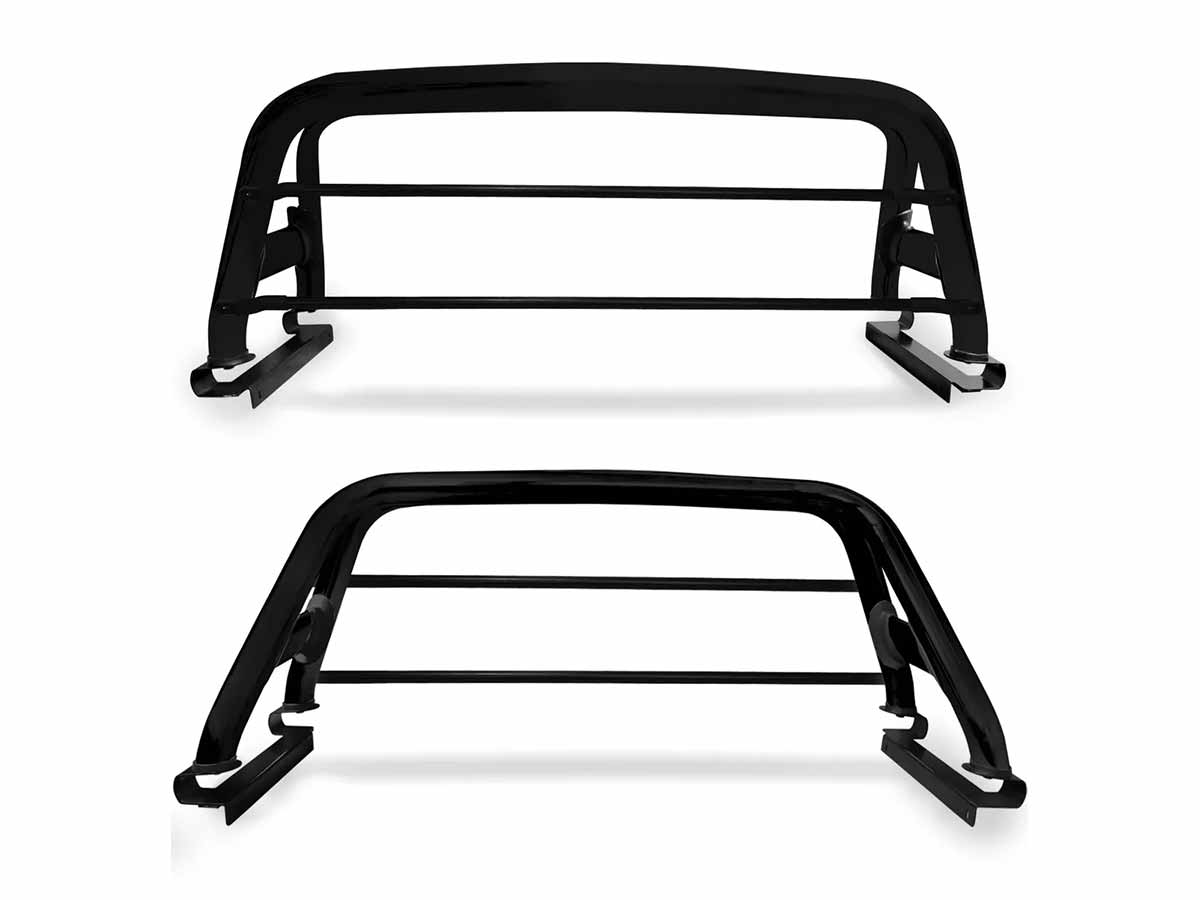 Barra Antivuelco Negra Doble Caño con Reja Protectora de Luneta para Nissan Frontier D22 4X4 del 2005 al 2015