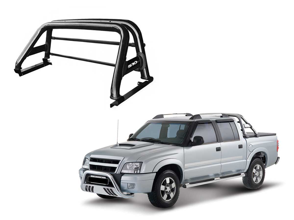 Barra Antivuelco Negra Doble Caño Con Reja Protectora De Luneta Chevrolet S-10 1995 A 2012