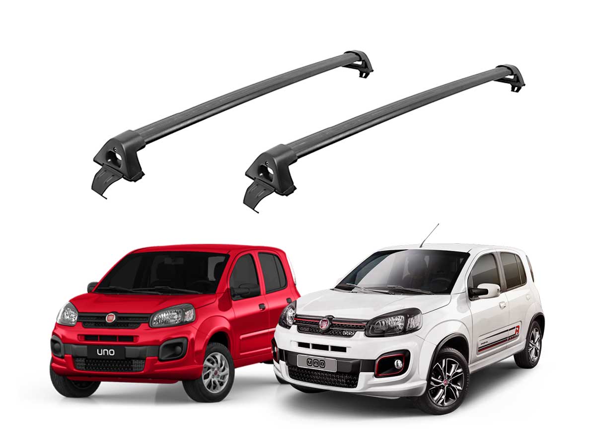 Barras De Techo Transversales Negras para Fiat Uno Evo 2010 al 2013, Uno Attractive del 2016 en adelante (Sin Barra Original) y Sporting 2016 en adelante