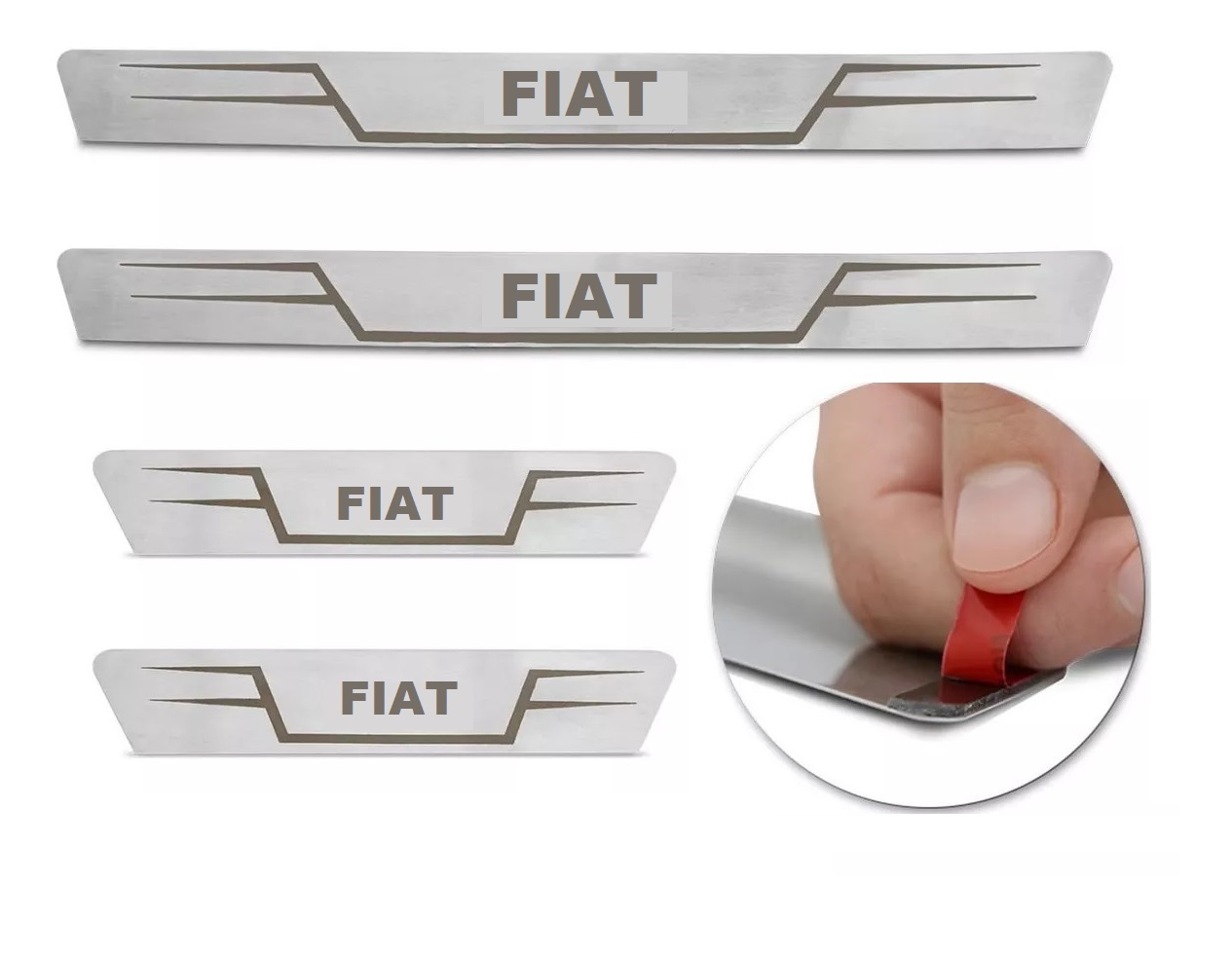 Cubre Zocalo autoadhesivo Acero Inox. Fiat Juego Recto delanteros 35 x 4 cm y traseros 20 x 4 cm