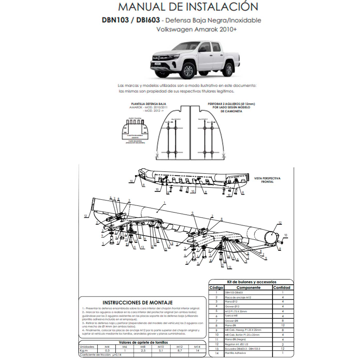 Defensa baja negra con chapon Amarok 2010 a 2015
