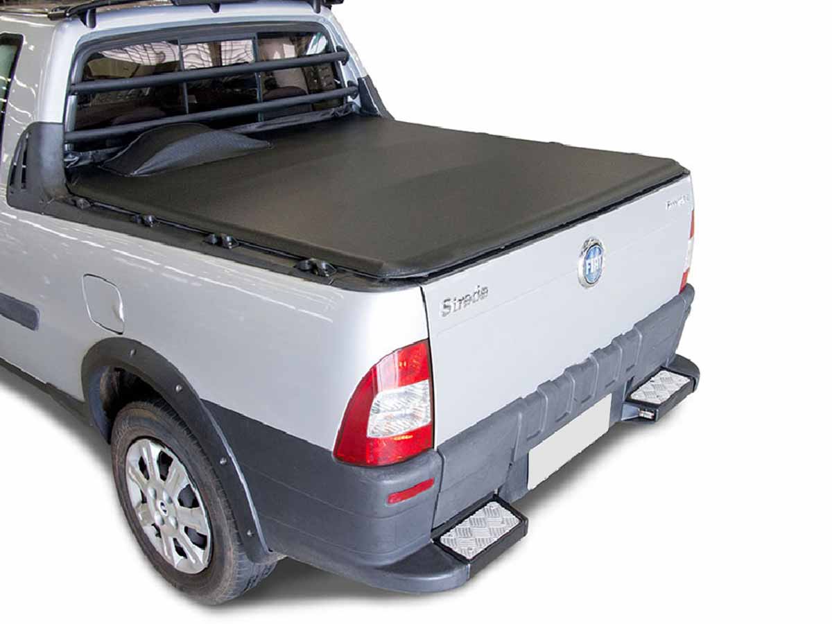 Lona Fiat Strada Working cabina extendida deja Ganchos para con auxiliar 1998 a 2013 Lona maritima vinilica de PVC con protección UV y borde reforzado ribeteado con hilo 8x8 en poliéster. Nombre del modelo termo grabado en relieve del borde trasero derecho Incluye dos tensores centrales de cara cuadrada y extensión curvada para una mejor tensión general y despeje del agua hacia desde el centro a los laterales. Eslinga de acero con maroma apertura central Abrazaderas de aluminio inyectado super resistente para mejor sujeción Trek compuesto de piezas de aluminio inyectado con bordes y rincones suavizados para mejor cierre. Sellado de base completa con goma EVA.