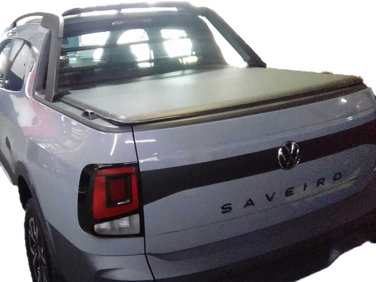 Lona marca DHF (Br) para Volkswagen Saveiro G5 G6 G7 G8 Extreme y Cross 2010 a 2025 Doble Cabina Dejando los Ganchos Originales