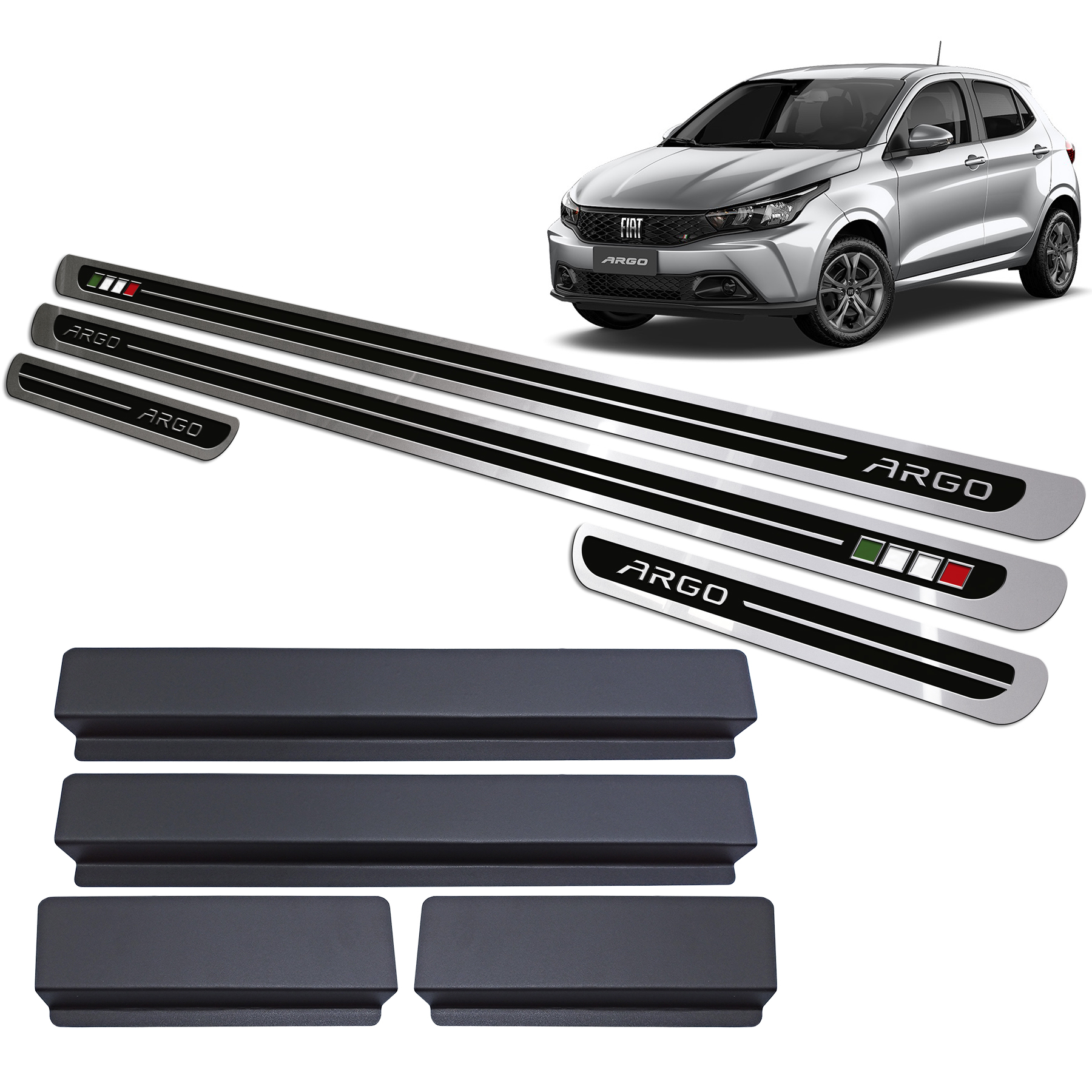 Cubre zocalo autoadhesivo marca THREEPARTS (Br) para Fiat Argo 2018 a 2025 Diseño especifico Acero inoxidable 304 Espesor: 0.5 mm Cepillado y pulido de alta Calidad Gravado quimico de Alto relieve Pintura Automotriz de alta resitencia Cinta doble faz 3M Scotch VHB YR-9625 de cobertura total. Vinilo Alltak con tecnologia Airflow 3.0 con adhesivo antiburbujas. 6016