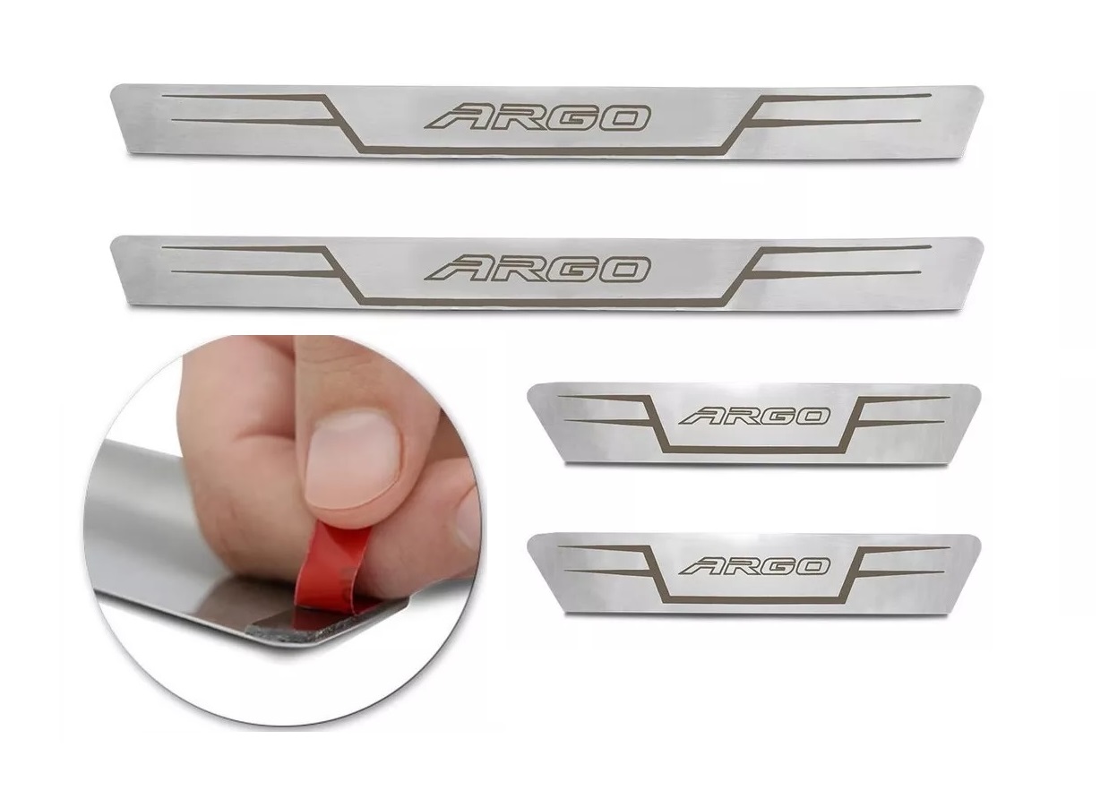 Cubre Zocalo Acero Inox. Argo Juego Recto delanteros 35 x 4 cm y traseros 20 x 4 cm autoadhesivo