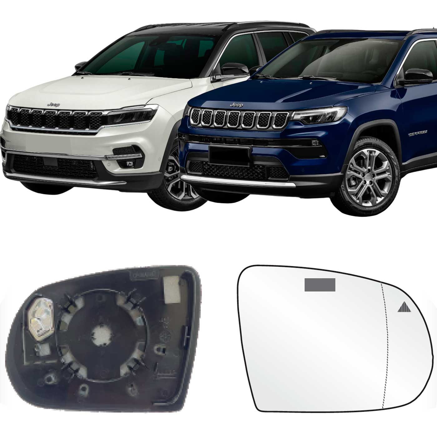 Vidrio de espejo marca REMOVEL (Br) convexo para Jeep Compass 2021 a 2024 Commander 2022 a 2025 derecho con sensor de punto ciego y logo de marca