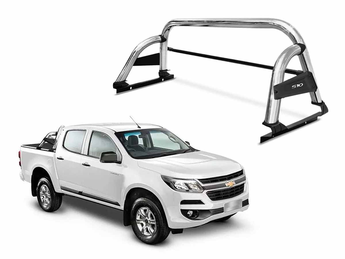 Barra antivuelco para Chevrolet S-10 2013 a 2024 cromada St con barra protectora de luneta