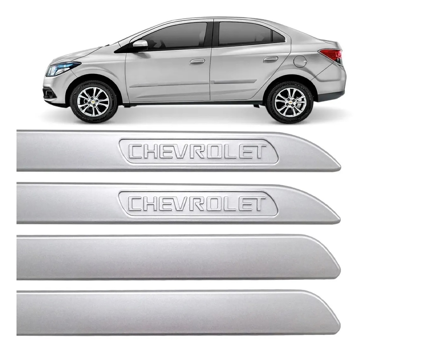 Molduras laterales cromadas con logo Chevrolet en relieve para varios modelos Medidas 95cm x 4.5 cm delanteras y 71 cm x 4.5 cm traseras
